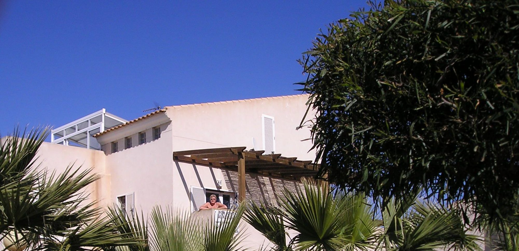 The second floor has two conservatories whose windows/doors and the roof can be fully opened. Always in the sun and out of the wind!