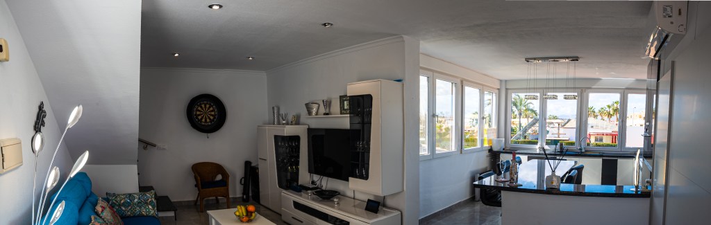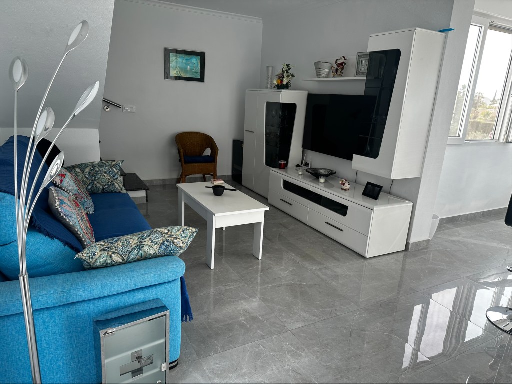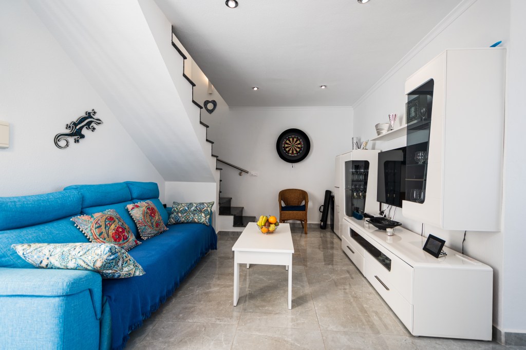 Casa La Sonrisa ist ein herrlich geräumiges Apartment mit zwei Schlafzimmern. Der Eingang befindet sich im ersten Stock, wo Sie auch eine gemütliche Terrasse mit wunderschöner Aussicht finden. Beim Betreten gelangen Sie direkt in das großzügige Wohnzimmer, ausgestattet mit einem großen Fernseher, superschnellem Internet und viel Stauraum.