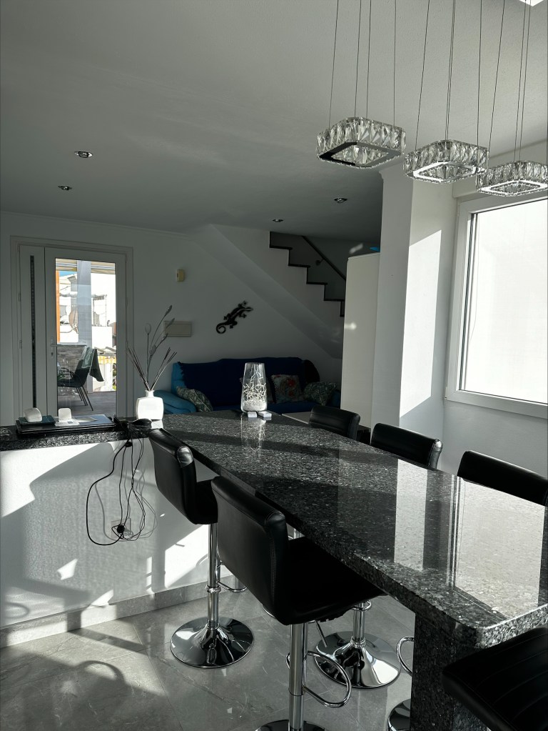 Casa La Sonrisa est un appartement très spacieux avec deux chambres. L’entrée se situe au premier étage, où vous trouverez également une agréable terrasse offrant une vue magnifique. En entrant, vous accédez directement au vaste salon, équipé d’une grande télévision, d’une connexion internet très rapide et de nombreux espaces de rangement.