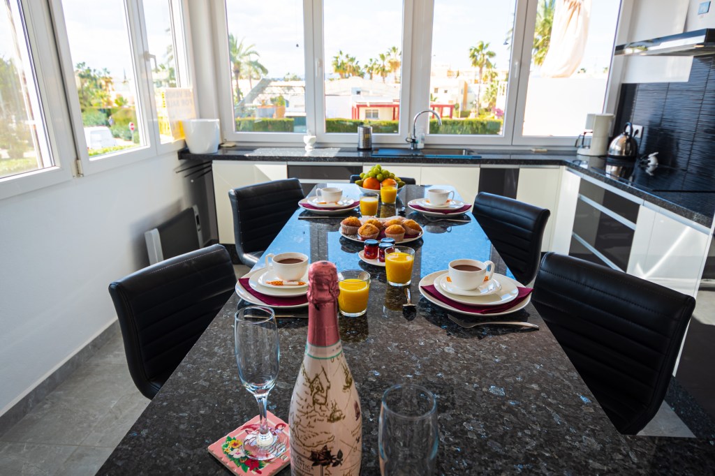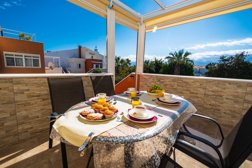 Casa La Sonrisa is een heerlijk ruim appartement met twee slaapkamers. De ingang bevindt zich op de eerste verdieping, waar je ook een gezellig terras vindt met prachtig uitzicht. Binnenkomend stap je direct de ruime woonkamer binnen, voorzien van een grote tv, supersnel internet en veel opbergruimte. De open keuken is eveneens ruim en biedt volop opbergruimte, een inductie kookplaat, een grote koelkast, diepvries en oven, en natuurlijk alles wat je nodig hebt om lekker te koken: verschillende koffiezetapparaten, waterkoker, pannen en servies. Op de bovenverdieping vind je de badkamer, twee grote tweepersoons slaapkamers en twee prachtige terrassen. Eén daarvan is bijzonder groot, met een eettafel en comfortabele ligbedden voor de perfecte momenten van ontspanning. Alle kamers zijn uitgerust met airconditioning en het appartement heeft bovendien een eigen overkapte parkeerplaats.