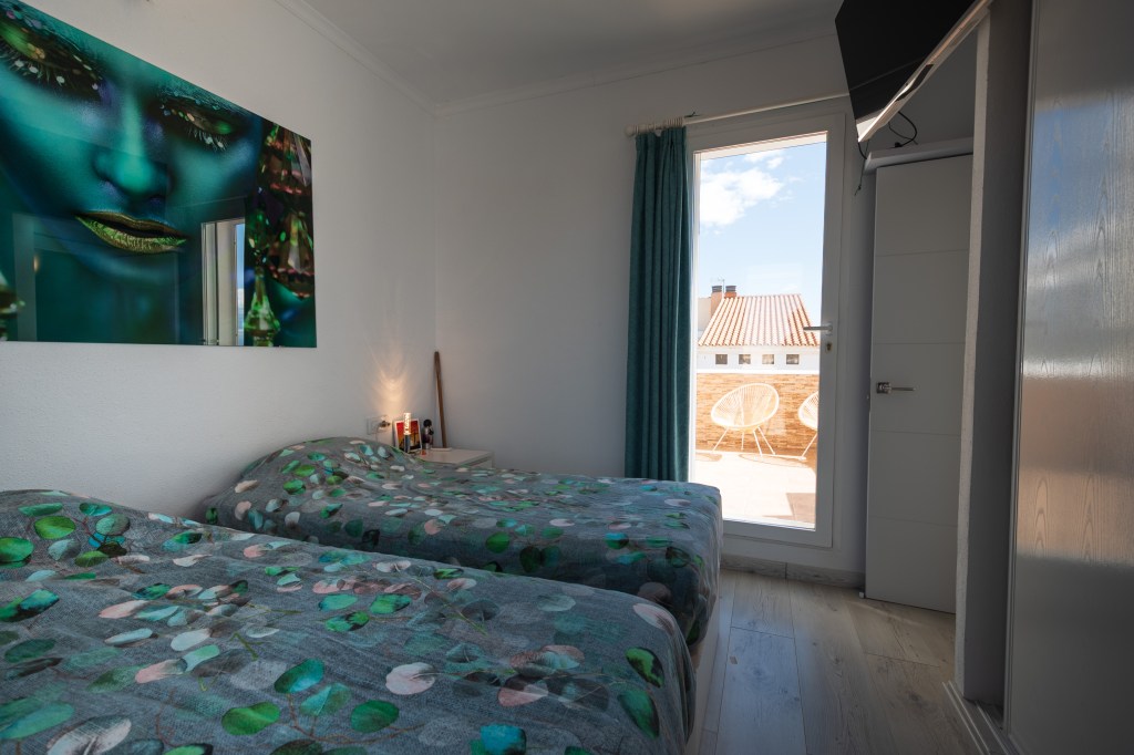 Casa La Sonrisa is a wonderfully spacious two-bedroom apartment. The entrance is located on the first floor, where you will also find a cozy terrace with beautiful views. Upon entering, you step directly into the large living room, equipped with a large TV, super-fast internet, and plenty of storage space.
